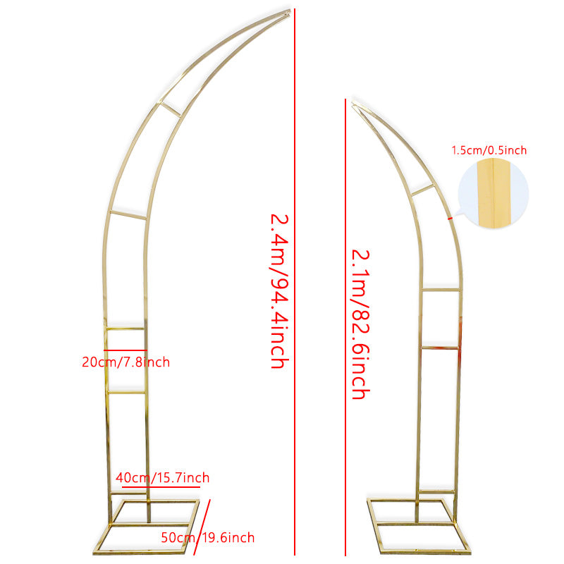 2.4M Gold-Plated Iron Horn Arches Metal Frame Outdoor Wedding Props Backdrop Screen Flower Stand Party Scene Layout Arch Shelf A4965