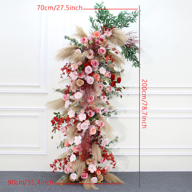A119 A7497 Pampas Grass Willow Leaf PinkHang Floral Arrangement Wedding Backdrop