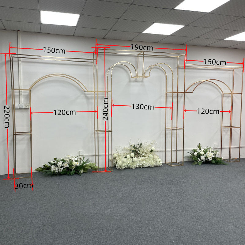 3pcs/Set Gold-Plated Wrought Iron Square Screen Wedding Backdrop Heart Frame Arch A8082