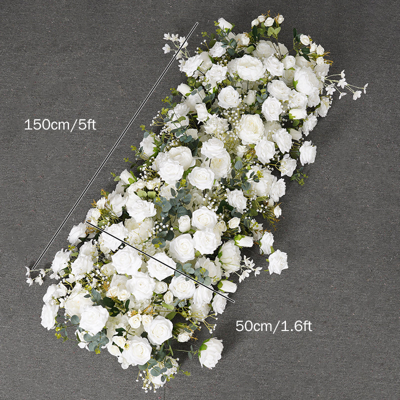 A7791 White Rose Babysbreath Flower Row Runner Wedding Arch Decor Floral Arangement