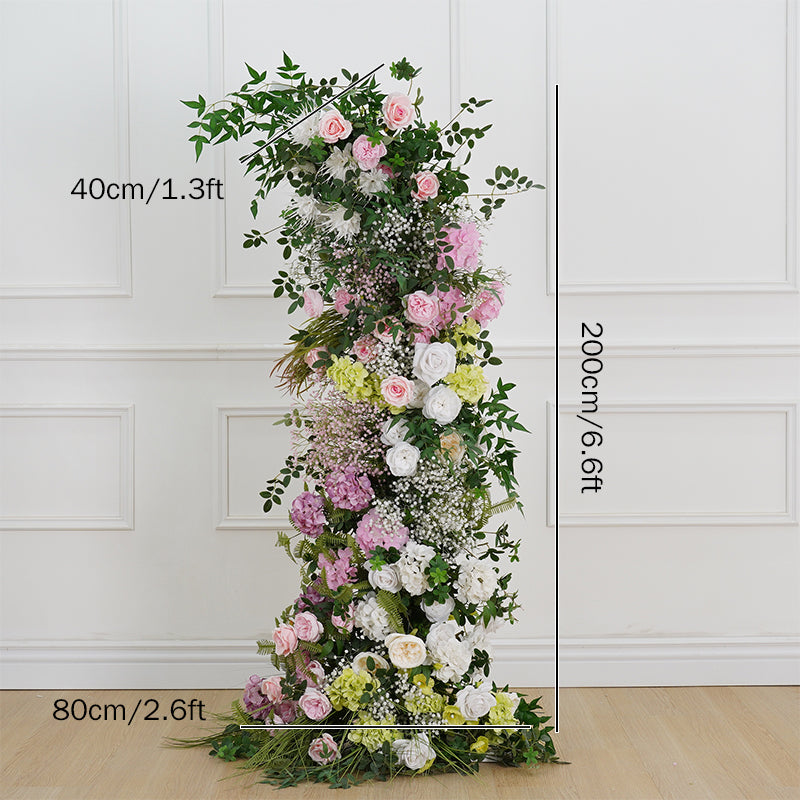 A7847 Pink White Rose Babysbreath Flower Row Decor Wedding Backdrop Horn Arch