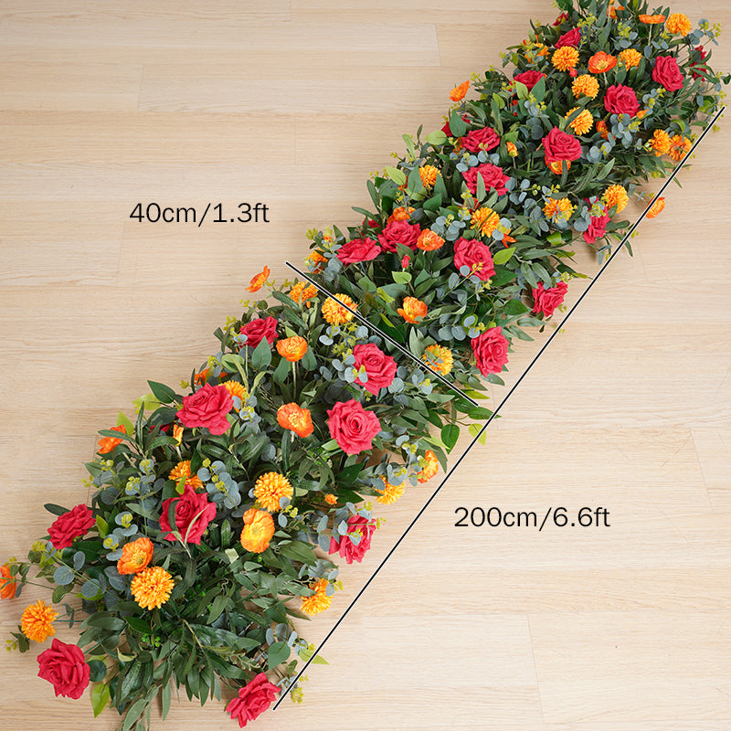 A8108 Red Orange Rose Green Eucalyptus Banyan Leaf Floral Arrangement