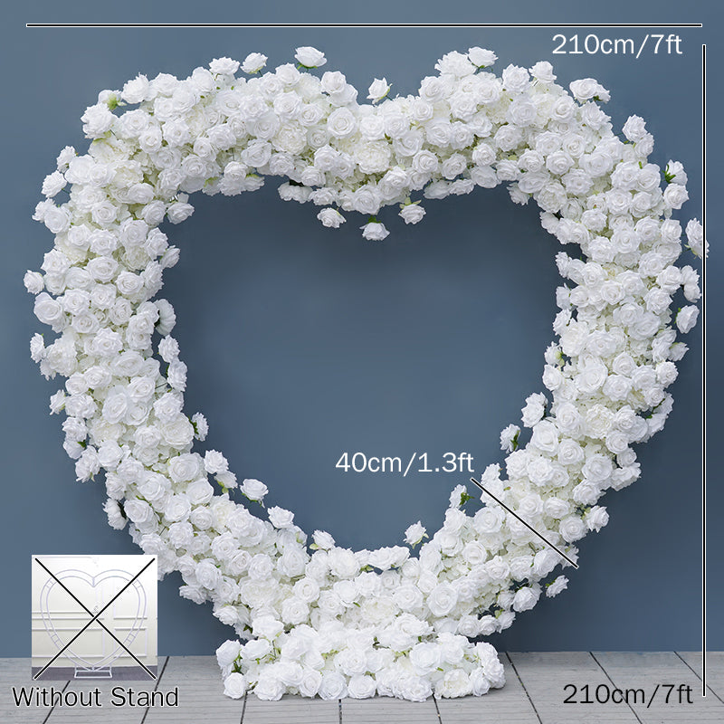 A8203 Cloth Base White Rose Floral Arrangement Wedding Backdrop Heart-Shaped Arch