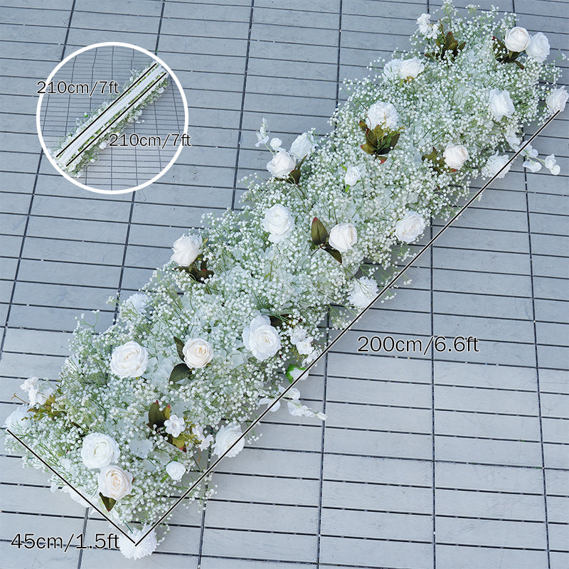 A8216 White Roses Baby's Breath Wedding Backdrop Arch Decor Floral Arrangement