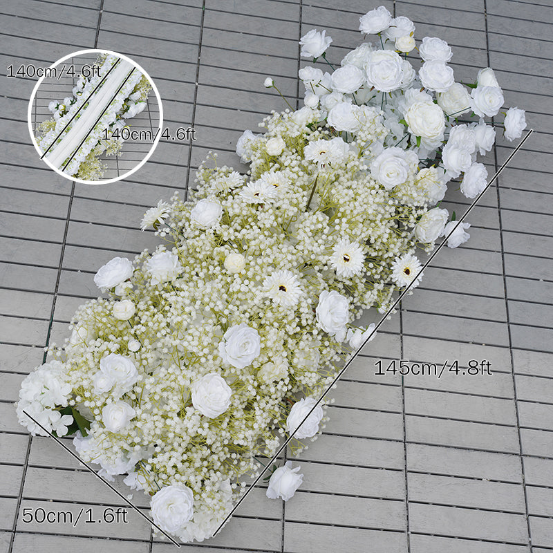 A8728 White Rose Baby's Breath Wedding Backdrop Arch Frame Decor Arrangement Floral