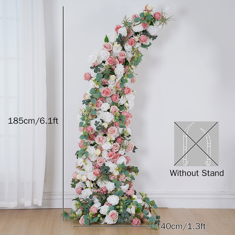 A8749 Cloth Base Baby Pink White Floral Row Decor For Wedding Horn Arch