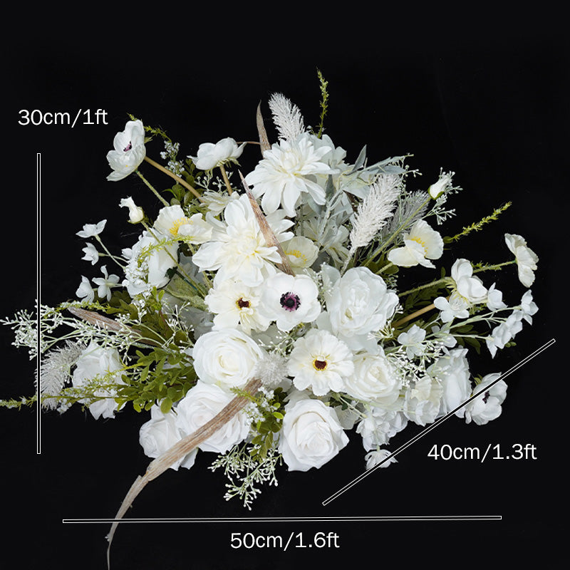 A8774 Table Sofa Runner White Rose Hang Floral Row Decor Wedding Backdrop Horn Arch
