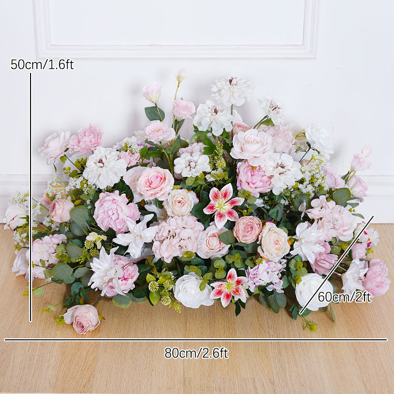 A8783 Pink Rose Green Leaf Floor Floral Arrangement Outdoor Wedding Backdrop