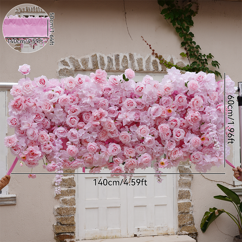 A8623 Pink Cloth Base Flower Row Decor Wedding Backdrop Square Frame