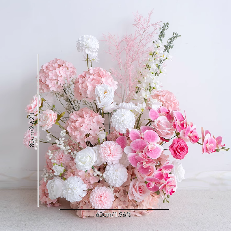 Pink Wedding Floral Arrangement Backdrop Horn Arch Frame Floor Flower Row