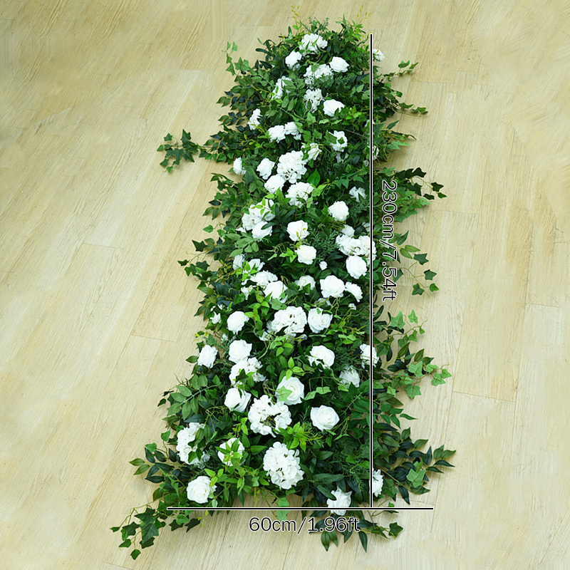 A8629 White Rose Green Leaf Floral Row Decor Wedding Backdrop Square Frame