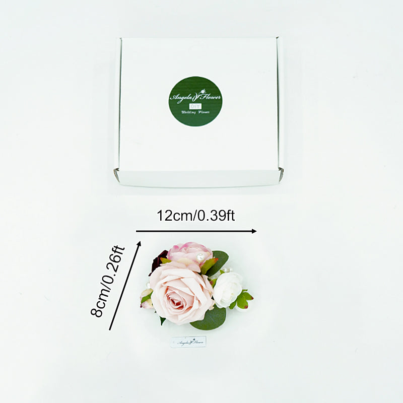 A864610 Bean Paste Rose With Greenery Wrist Flower Bride And Groom Wedding Supplies