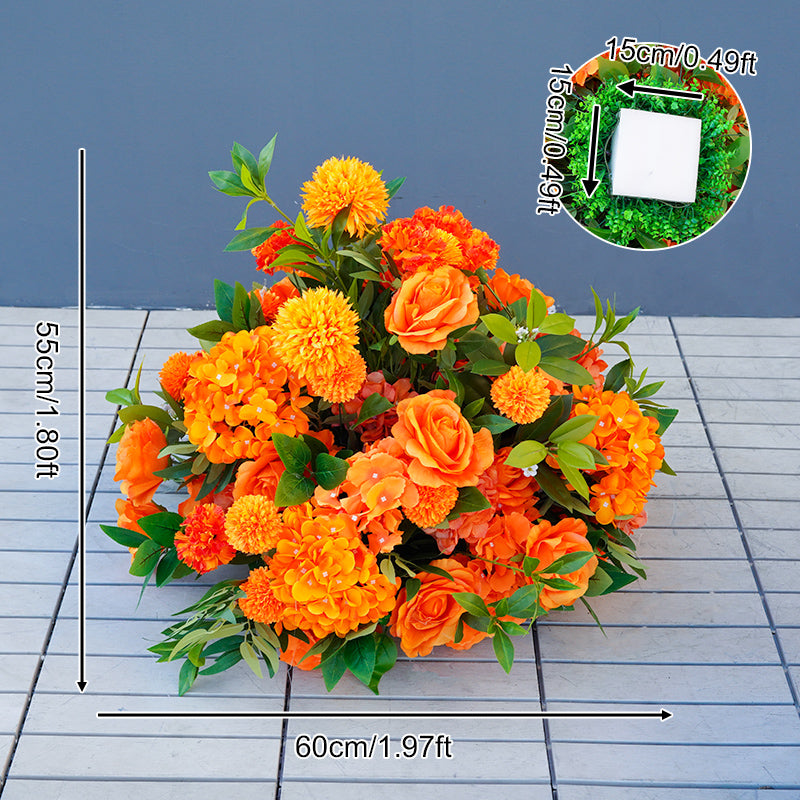 A8678 Orange Rose Hydrangea Greenery Wedding Horn Arch Floral Arrangement