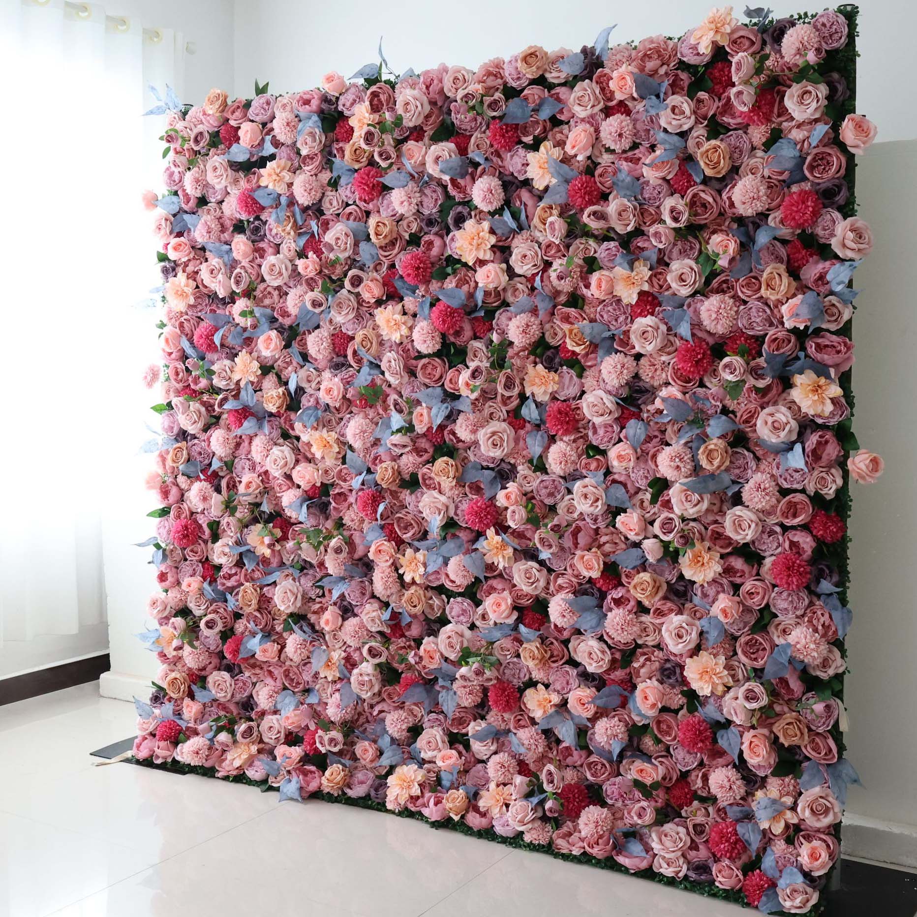 Roll Up Fabric Artificial Flower Wall Wedding Backdrop, Floral Party Decor, Event Photography-VF-298